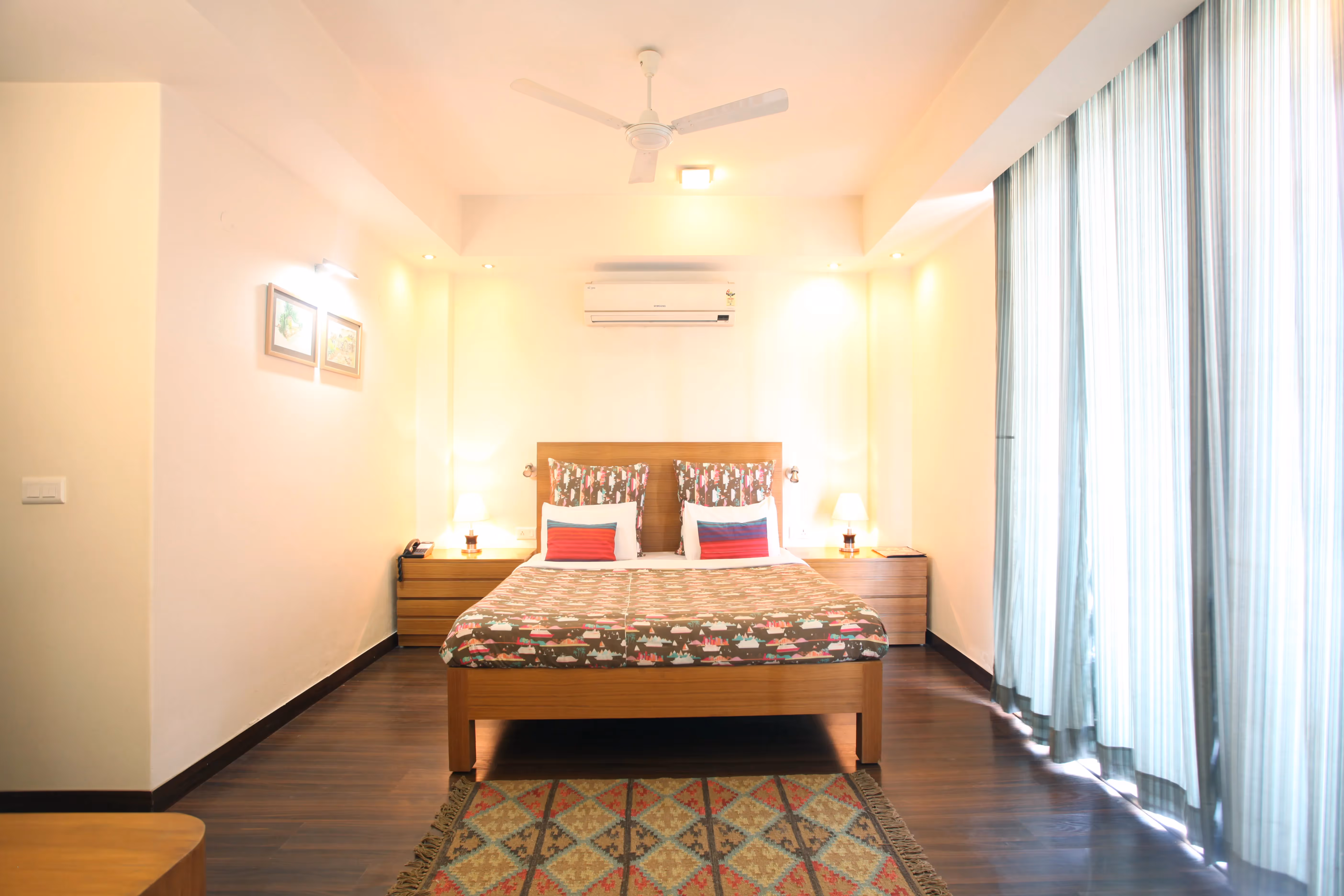 Comforts of having a fully independent space to yourself. This 1 BHK Service Apartment in Gurgaon is Ideal for families as well as single travellers who want their own space and a fully managed living experience. Great long term discounts & yearly leases too! Ideal for long stay / couples Accommodates max up to 3 Adults + 1 Child.