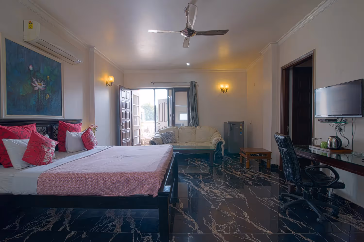 Large sized Studio with en-suite fully equipped kitchen and attached bathroom. The studio is ideal for short to medium duration stays and is well furnished. The bathroom is modern and the linen is changed regularly during your stay. Rooms on the upper floors have balconies that have sector/ city views. Rooms have plenty of natural light and are airy.